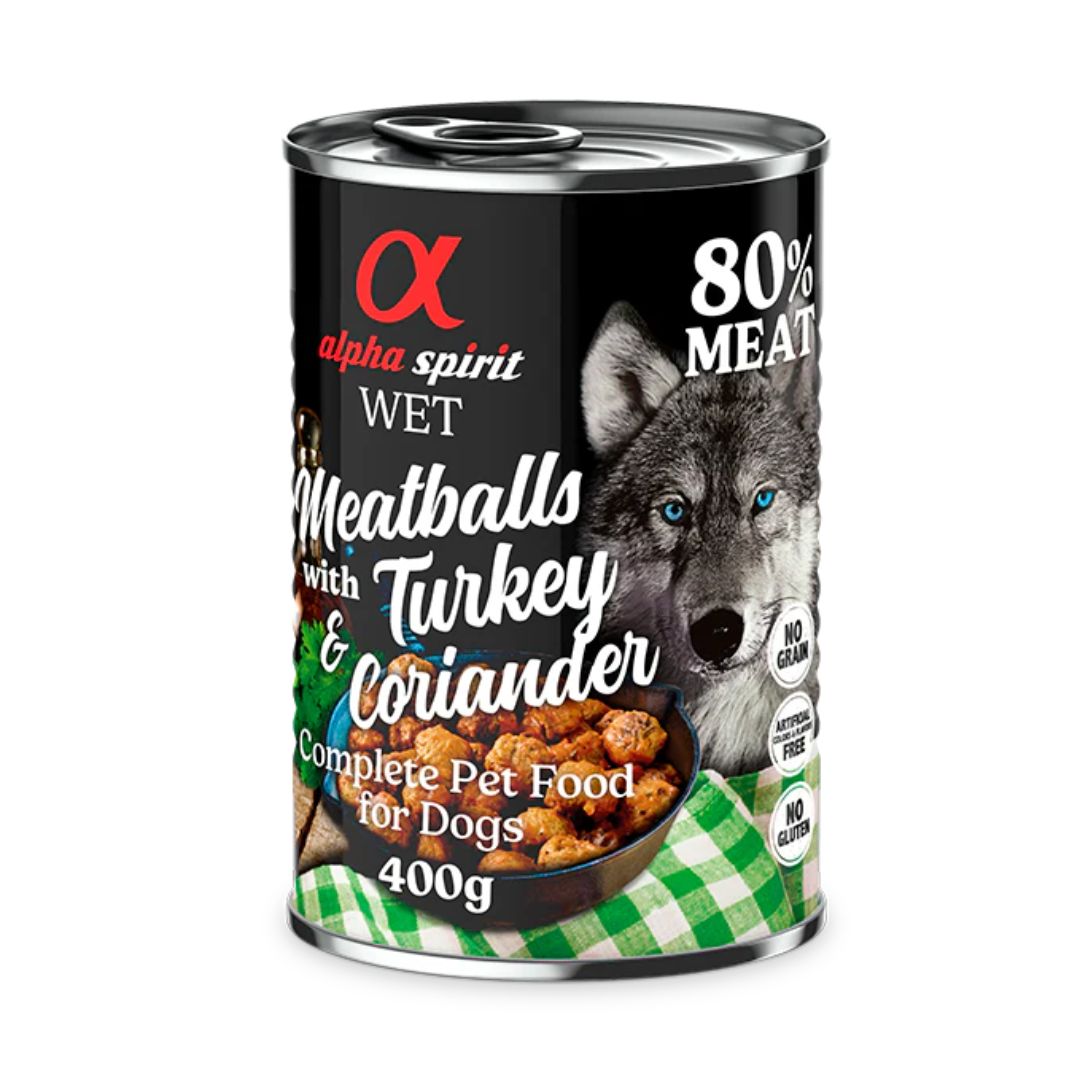 Las albóndigas de Alpha Spirit son un alimento húmedo y completo. Libre de cereales, sin gluten y sin aditivos artificiales.